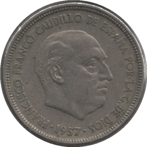 1957 (58) Spain 50 Pesetas Coin (KM# 788 Schn# 36)
