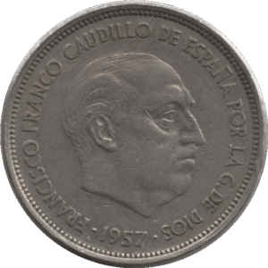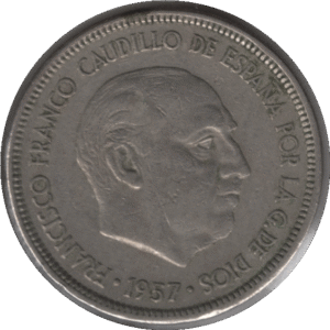 1957 (58) Spain 25 Pesetas Coin (KM# 787 Schn# 35)