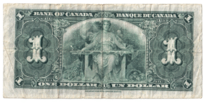 1937 1 Dollar Bank of Canada U/N Prefix